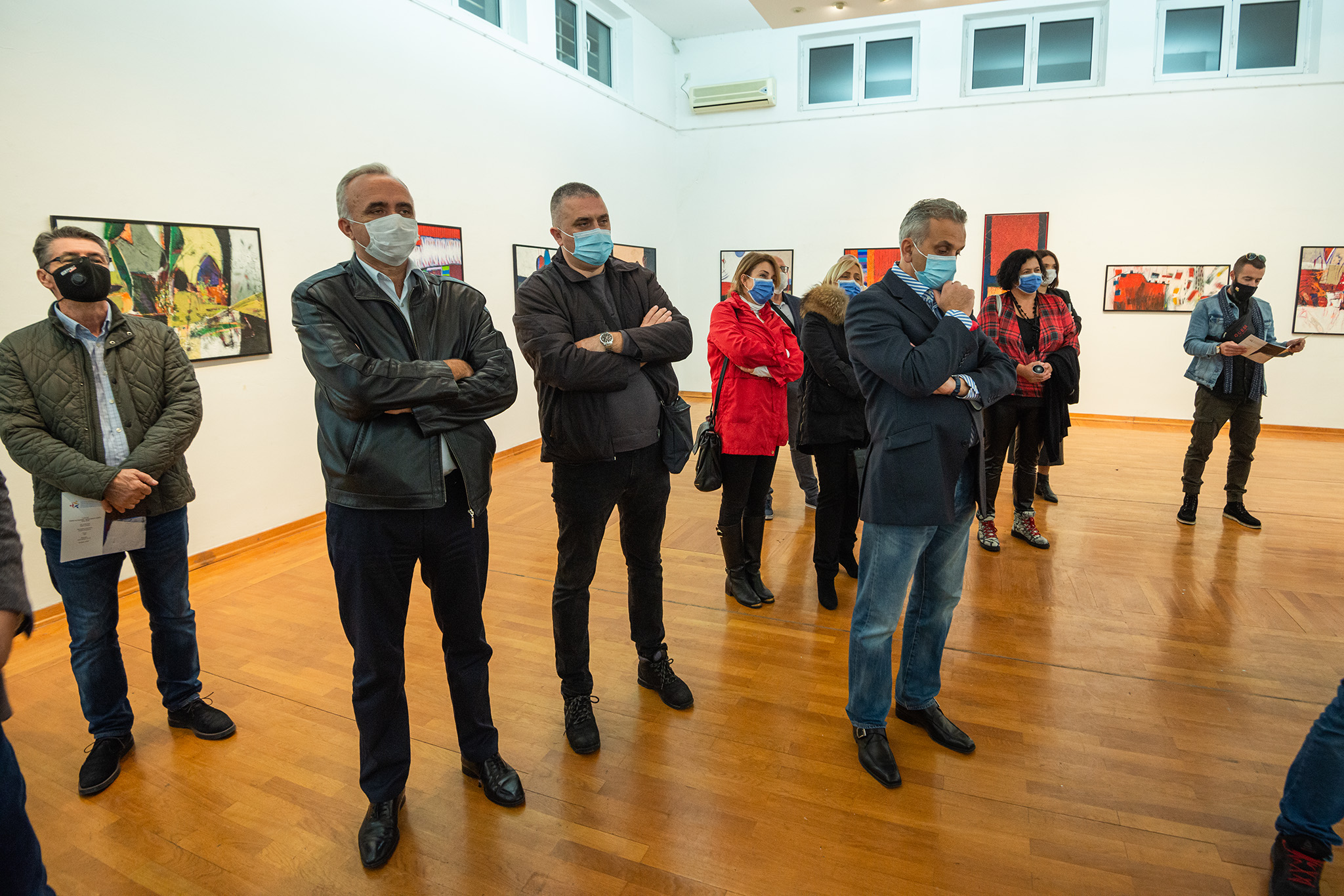Izloženo je 33 rada – ulje na platnu, akrilik i kombinovana tehnika na platnu i lesonitu.